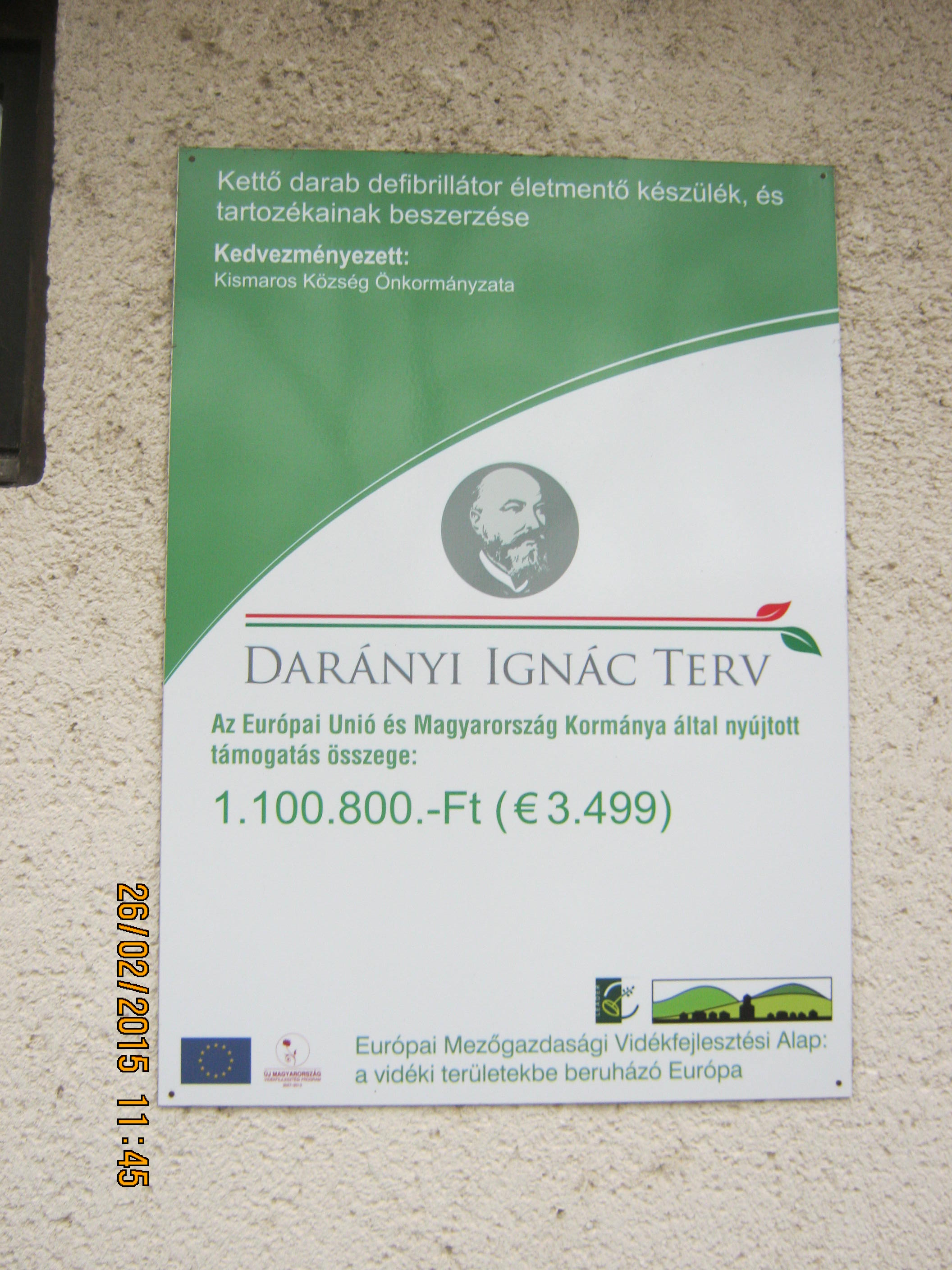 A pályázat keretén belül kettő darab defibrillátor életmentő készülék, és az alábbi tartozékok kerültek beszerzésre: 6 db egyszer használatos elektróda/felnőtt, 2 db egyszer használatos elektróda/gyermek és kettő darab hordtáska. Az eszközök műszaki állapota minden évben felülvizsgálásra kerül. Támogatás összege: 1.100.800 Ft